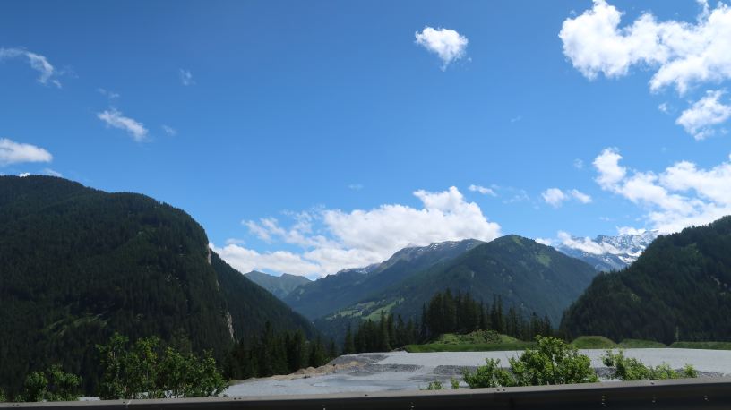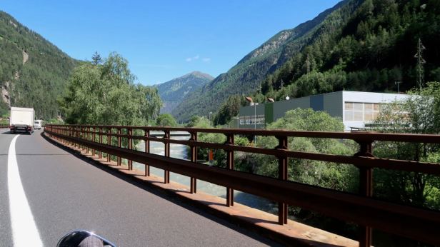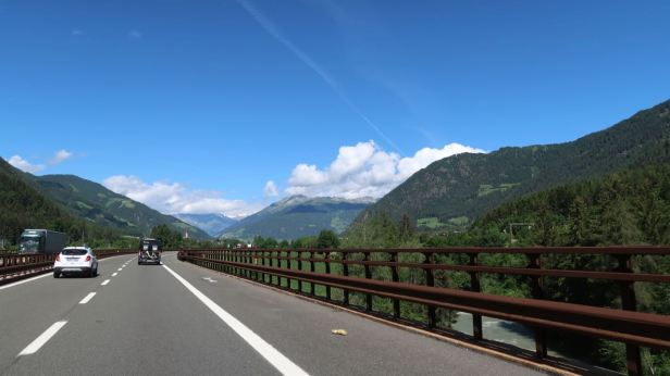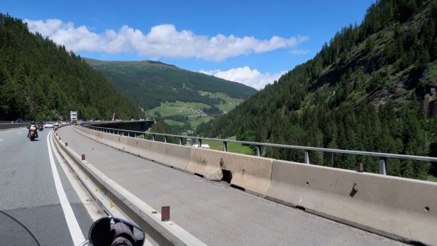 We had set the navigation onto the “Fastest route – WITH highway” and this guided us to the A12 highway where we paid the toll and set off in the direction of Innsbruck and Munich. Apart from a few short delays along the road due to carriageway repairs, the ride was smooth and easy. It led initially to Austria via the Brenner pass and, if you are obliged to use a motorway, this would probably be the one to pick. It was simply beautiful riding through a vista of green hills rising to mountains, some of which still had traces of snow despite the heat at our level.