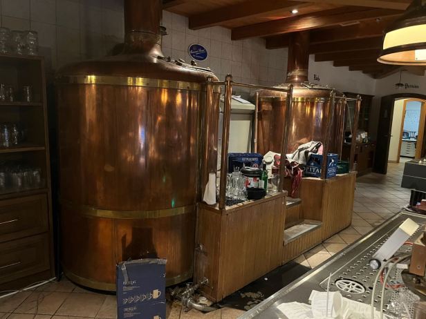 The beautifully restored Stangl Brewery (Brauereigasthof Stanglbräu, Dorfstraße 11, 93345 Hausen, Germany) was like a picture postcard. It even had the nest of a stork perched upon the chimney. This is considered good luck.