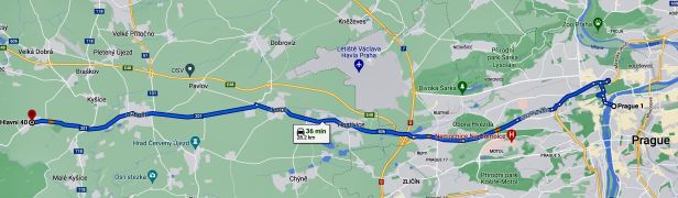 Our destination lay to the West of the city so we cut through the town and headed out on the fairly main exit route towards the western suburb of Bilá Hora. There we actively avoided the the westbound D6 motorway (which you could also use to get close). We chose instead to head under the motorway interchange (Prague’s very own “Spaghetti Junction”) and take the lesser Road 606 through the small town of Hostivice and out through the countryside. At a roundabout, we took Road 201 towards the towns of Unhošť and our destination in Horní Beždekov. Be careful in Unhošť, the signing is not very clear …. (Yes ! Tou guessed it, I missed the turning and went slightly wrong !).