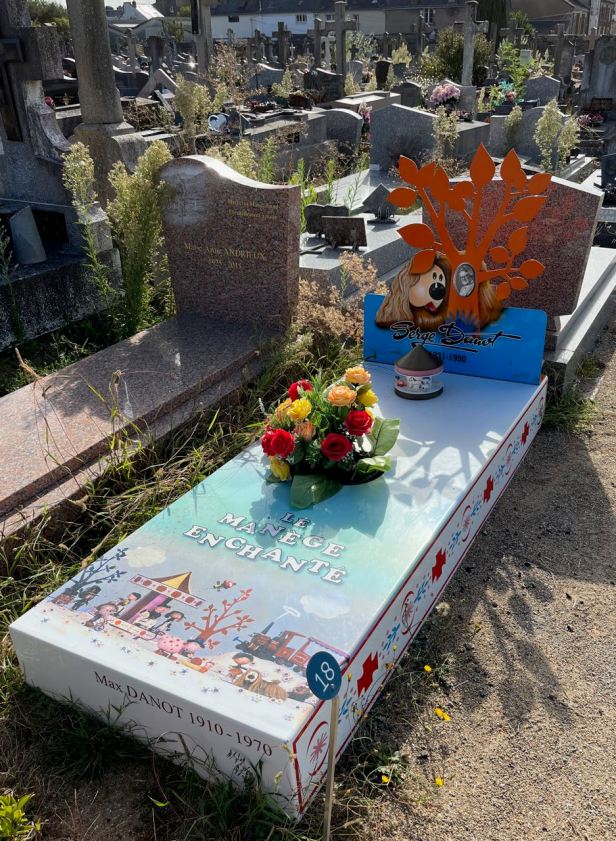 Somewhat to Lucie’s bewilderment, I had dragged her to Nantes with one purpose only, to visit a grave ! The tomb in question was that of Serge Danot, the creator of the iconic, not to say cult, animated tv series of the 1970s in England, “The Magic Roundabout”. However ridiculous it may sound, in those days nobody (and I do mean nobody) wanted to miss a single one of the five minute episodes which were, somewhat inconveniently, shown (on children’s television) shortly before six o’clock in the evening. Voiced, in the original, by the incomparably drôle Eric Thompson, the dialogue applied to the stories were carefully crafted to amuse not only small children, but also their parents, although in a very different way. Florence, Dougal, Ermintrude, Dylan, Brian and Zebedee were all household names. Lucie, of course, growing up in communist Czechoslovakia, had never heard of any of it and was bemused by my desire to go there.