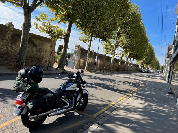 Sadly, having neglected, in the trauma of escaping from Nantes, to fill up the Harley, I then missed, due to some comedy French signposting, the next service area. I pressed ahead, but there was nothing with petrol shown as being on our road until long after the gauges indicated we would have been pushing the bike ! In the end, we left the highway for the only town in the whole of France (Ambon) which only had one petrol station – and this was hidden in a Carrefour supermarket car park at its very furthest end. In keeping with our need for drama, no sooner did we pull up, than the automatic refuelling system failed. A woman did come out of a booth and tried to explain what was happening. Sadly, her diatribe only revealed that I do not understand French as well as I thought I did. Luckily, someone, somewhere, probably hit a reset button and the pumps suddenly began working again. A fraction over seventeen litres of lead free gurgled down the hose – into a tank with a supposed capacity of eighteen litres …. phew !