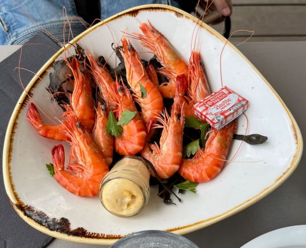 We walked down from the tumulus into the town centre of Carnac and started looking for a place to eat. Rather surprisingly, because there are a lot of tourists, there was not much choice and, in the centre, there are more cafes and bars than restaurants. We finally did find what looked like a “proper” restaurant, Brasserie La Dame de Caro (2 Rue Saint-Cornély, 56340 Carnac.