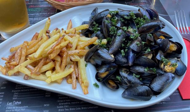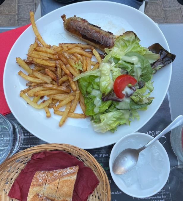 Denied her promised fish, Lucie boldly opted for a Breton “speciality”, that I translated as a duck and pork sausage. In the middle of eating it, Lucie asked me to check whether “canard” truly meant duck (it does) and then announced she could not taste any duck and that she could not taste any pork either. I am assured that, although it was edible, it had absolutely nothing else to recommend it !
