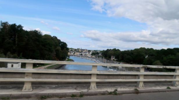 Without the anxiety of running on petrol vapour, the rest of the journey to Carnac passed off largely without incident. We were near to the coast and, with my visor up, I could smell the salty air. We passed over a number of small estuaries and inlets with the sea glistening on our left and green countryside on our right.