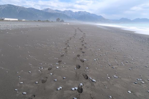 We went along to the town centre, which basically comprises a few souvenir shops, trip operators and cafés and restaurants clustered around one road. Most people do not stay in Kaikoura for long. People arrive, see whales from a boat or plane and go, it is not really a place for a prolonged vacation. There is the possibility of fishing and surfing, which younger visitors also like, but that seems to be more in the next bay, where it is a bit more residential.