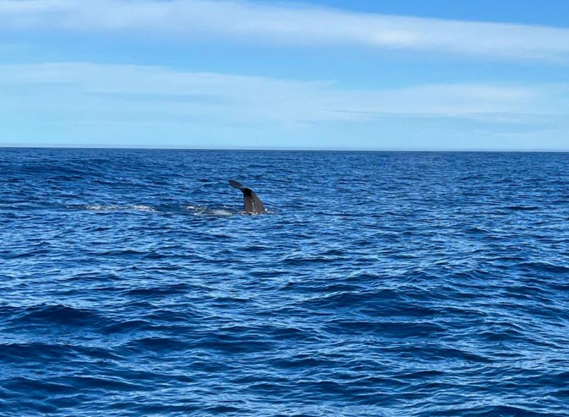 We watched for a while, a whale IS a magnificent thing and we could only see a small percentage of it. Then the guide announced that we should all get our cameras ready, because it was about to dive. First, more body, curved for action was visible, then it completely disappeared as, with that characteristic flick of its tail above the surface, the whale dived and slowly swam down. It was mesmerising and seemed almost unreal.
