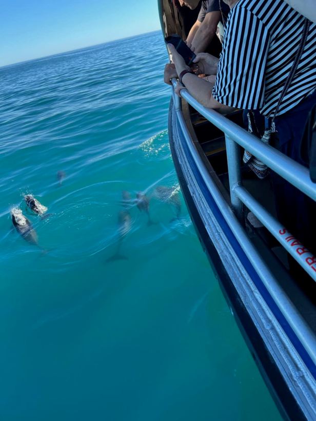 On the way back into the bay, we were again let out for for five minutes as we passed among a school of Dusky Dolphins, which were the most common species there. With an audience and, believe me, they KNOW, they did what dolphins do, jumping and diving all around the boat while we all tried to capture their endearing antics on film. Then it was back to the pier, onto the buses and it was over. I will say it yet again, breathtaking !
