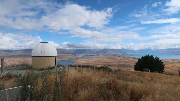 Then, they turned back down and we took the steep path between the observatory domes to the Astro Café. The hill was originally a US military observatory. It was later converted to an astrological observatory and is part of the research department of the University of Canterbury, New Zealand. One dome (nicknamed the “robo-scope”), is remotely controlled by the University of Boston. It was pointed out, perhaps a little ruefully, that those astronomers in Massachusetts could go to work in the sunshine and not at the dead of night.