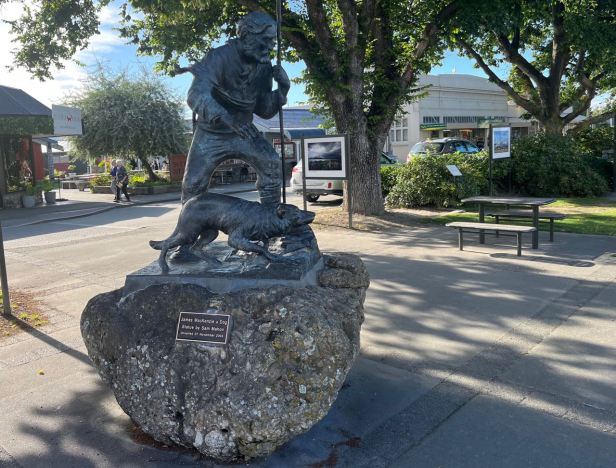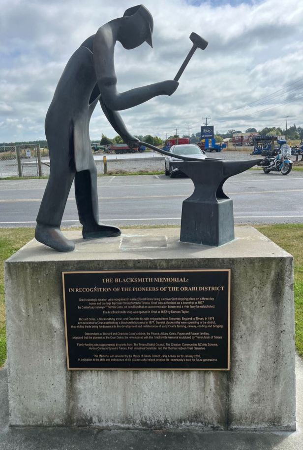 Our next stop was in Orari, at the vaunted but, in reality, fairly unremarkable café, Mes Amis (Orari Station Road, Orari). Outside the café was a statue honouring local blacksmiths. Orari was just far enough from Christchurch for horses travelling south to wear out their shoes, so blacksmiths thrived there.