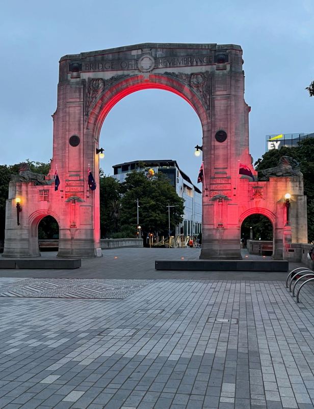 Directly opposite the restaurant, spanning the Avon river, was an impressive Bridge of Remembrance. This was dedicated to those from the Canterbury region who had given their lives in the two World Wars.