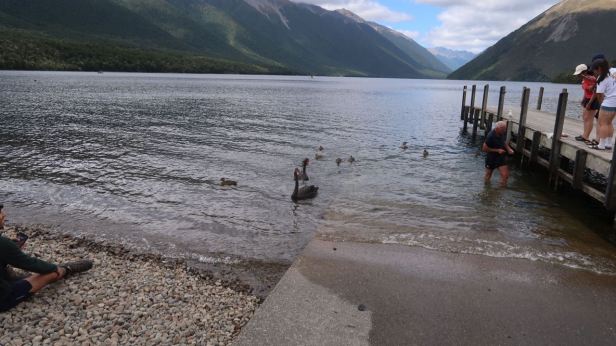 At St Arnaud, we had a good breakfast in a small café attached to a petrol station. Our principal reason for stopping there, however was to see the beautiful nearby Lake Rotoiki. This is said to be the most photographed lake in New Zealand. It certainly was a stunningly beautiful view.