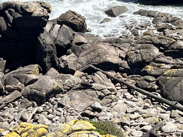 Happy looking tourists were returning down the path from the cliffs. That gave us confidence of seeing some seals. At the lookout point, a sign informed us that we would see seals in the water, so we looked there first. However, there were none in the water, but there was a single female basking on a rock with a cub frolicking around. Another adult lay, slothfully sunbathing, a little further away. Three in all ! I said to Lucie that if this was the most successful colony, I would not want to see what the less successful ones looked like.