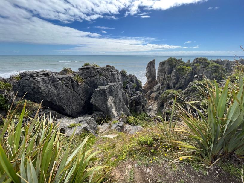 After returning to the original route, we headed for the “Pancake Rocks” (or Punakaiki rocks depending on the exact location). Graham, the policeman on the Inter Island ferry, had recommended these as something to see and they had not appeared in our original planning.