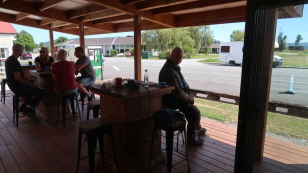 After yet another of Lucie’s chosen listed cafés, in the town of Ross, was found to be closed, we had our breakfast in Harihari village. I was briefly saddened by the fact that, because we had missed breakfast, which was only served until 10.30, I could not have bacon and eggs on toast – but then amused by the fact that the lunch menu did allow me to order a toasted sandwich containing, you guessed it, bacon and eggs …. Oddly, this was cheaper. Go figure !