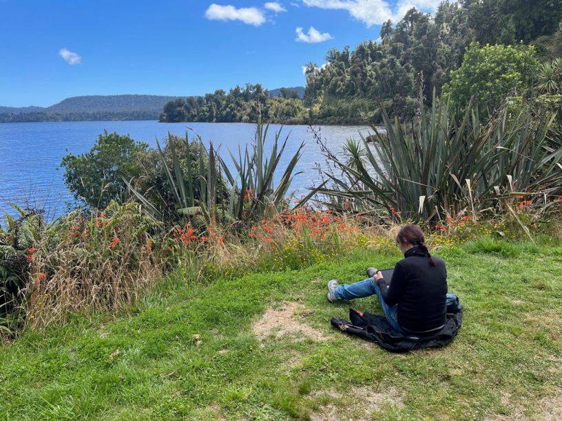 It is hard to describe just how beautiful the countryside of New Zealand is. We were afraid that, eventually, we might become “used” to it. Luckily, around almost every bend in the road there was some new scenic delight. We made one of our regular stops beside this lake. The water really was that colour !