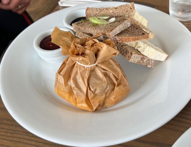Lucie wanted to have a “scone“, which is traditionally made with butter and jam, but to her surprise, it was a savoury item, there was even bacon in it. The folks in those parts are obviously not descended from Yorkshire or Cornish stock !
