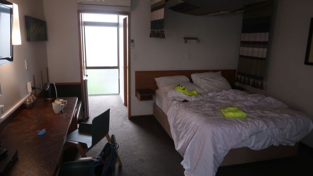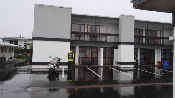 In the morning, when we woke up, thanks to the continuing cyclone, rain was absolutely pouring down. We were in no particular hurry to head out into it. Our plan for the morning had been to ride up to the Gisborn Falls but, looking at the water streaming dramatically off of the roof and past our widows, we both agreed that we were unlikely to see a more impressive cascade of falling water fifty kilometres up a wet and winding road. In mutual accord, we crossed the falls off of our list. Checkout time was at ten o’clock and sadly, the conditions had not improved by that time.