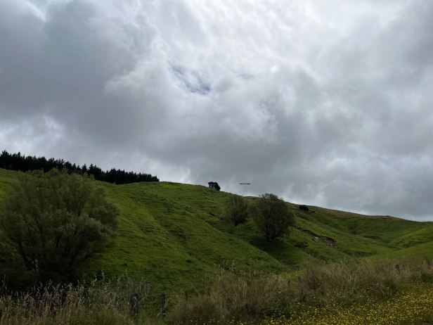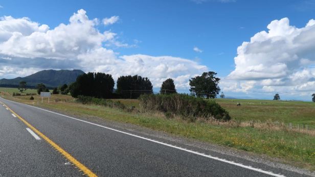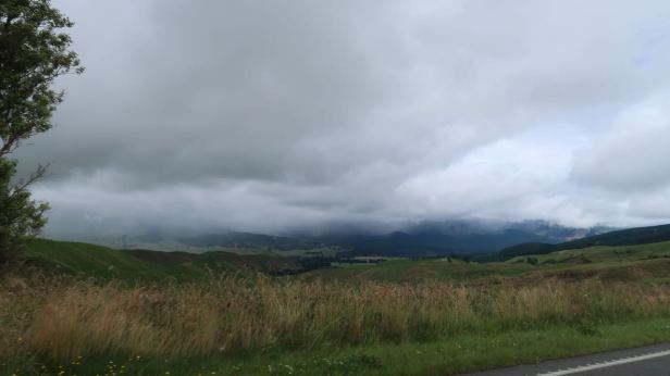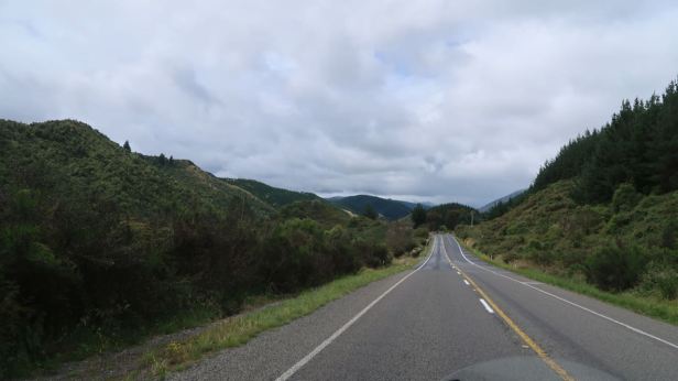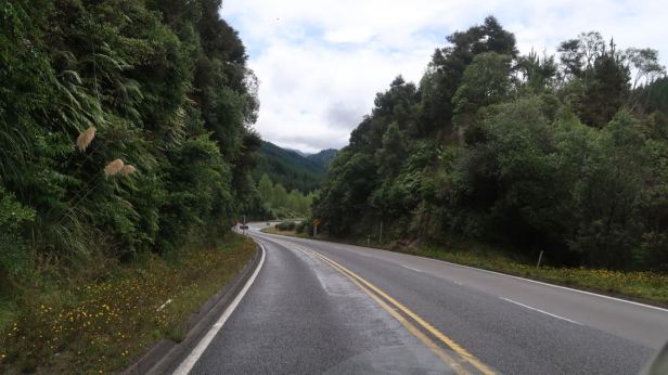 Although we were on a main road, the SH5, many more kilometres passed without us really seeing anything of interest because of the sheeting rain and gusty wind. The road, as so many are in New Zealand, was twisty and undulating. It was also beset, at intervals, with small trenches worn into the inside lane which needed great care on such a greasy surface and, occasionally, deeper holes into which I definitely would not have wanted to put the front wheel. It was a bit trying. About 30 kilometres after leaving Napier, as we slowly ascended from the coast into the hills, the rain stopped as if someone had turned off the tap.