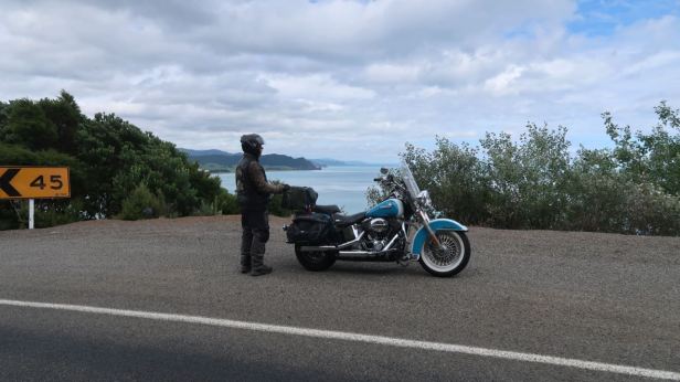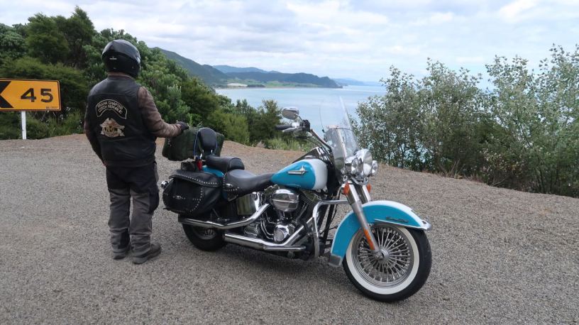 Somehow, we survived it and finally arrived at our lodgings, the Waikanae Beach Motel (19, Salisbury Road, Gisborn). Needless to say, it was by then, bright sunshine again. Only the filthy state of the Softail attested to what we had just ridden through.