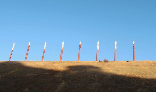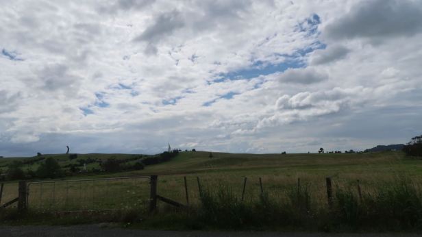 Soon after turning we saw a large piece of art on a hill in the distance. Then another appeared and then another. Lucie quickly clicked the camera a few times, but we did not know what she was actually taking pictures of. On the winding country road, there was nowhere to stop and, beyond the next hill, nothing at all could be seen. In case this is your thing, we looked it up and the art was works from the Gibbs Farm Art Park (https://gibbsfarm.org.nz).