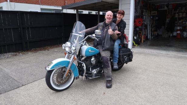 We had just enough time to change into our motorbike clothes before the Uber arrived. He drove us to a residential area and a house that did not look like a rental place at all. It was the garage of a family house, but Baz and Ali, who rented us the motorbike, do not live there full-time. They have a farm near the east coast and were keen to get there for the weekend. As Baz filled out the paperwork with us, it turned out that he was renting us his very own bike. It was a Heritage Softail, the same as the one we had in Australia, just a little older. It had already done 400,000 kilometres and Baz has plans to make that a million. He obviously loved it as it gleamed like new and although to someone who knows, its age is obvious, the man in the street would never guess from just looking. It was beautifully maintained by someone who really knows what he is doing and, I assure you, it rode like new.