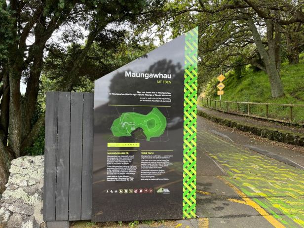 On the way home, I suggested that we should take advantage of being mobile and visit one of the two attractions that I had chosen in Auckland (and Lucie agreed). This was Mount Eden, the cupola of an extinct volcano and the highest point in Auckland at 196 metres above sea level. The SatNav was, fortunately exactly the same as ours at home, so we had no difficulty in getting it to take us there.