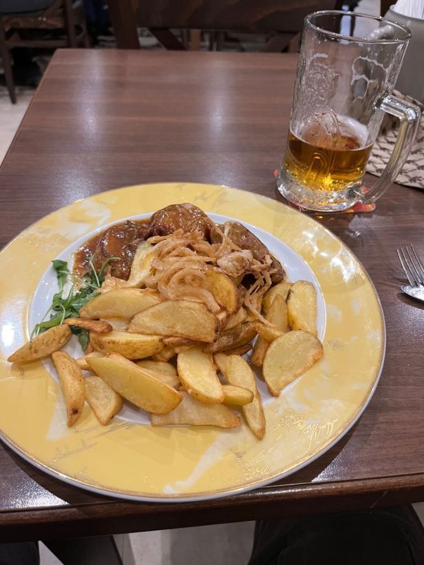 I had a really well prepared and very tasty piece of pork as my evening meal and a couple of Gambrinus beers at what appeared to be 2019 prices !