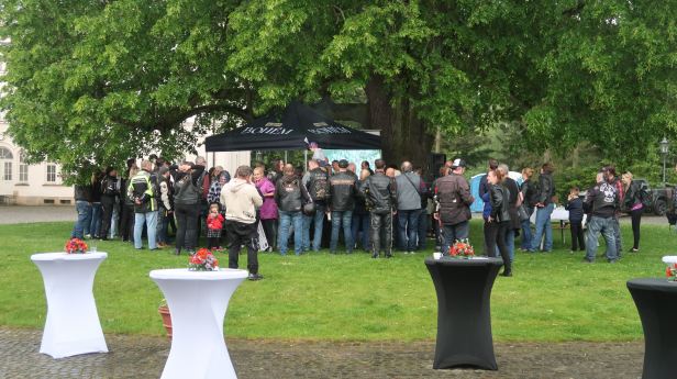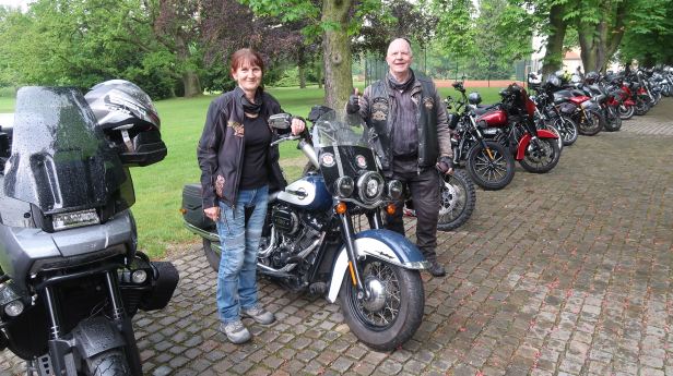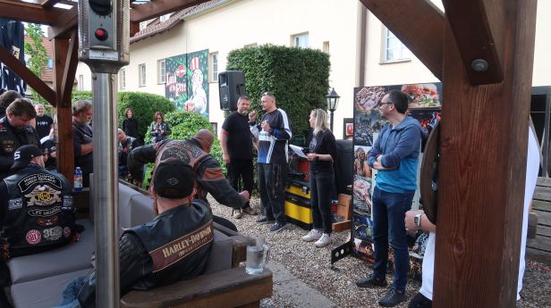 After a humorous interlude where the competitor who travelled the farthest was given a clock, the winner was announced. It was not us (see above) but it was Vilík, a member of HOG Prague. His prize was 48,409 Czech Crowns. I cannot see how that is half of anything – but it does not matter because, as is traditional, he gave it to Nedoklubku any way. You can see Vilík, just ahead of us, in the very first “on the road” picture. I should have just followed him !