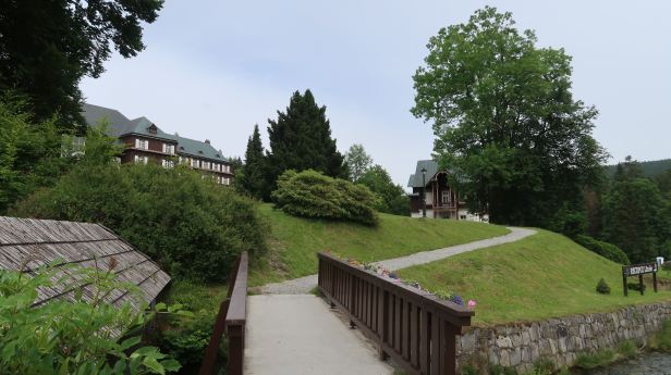 Karlova Studánka was only a few kilometres farther on and we turned into it. It is a spa town, as implied in Czech by the “Studánka” part of its name and is exceedingly cute to the point of being twee ! The roads are all block-paved, as opposed to being tarmac and all the buildings, principally in the somewhat grand, “First Republic” style, are very well preserved.