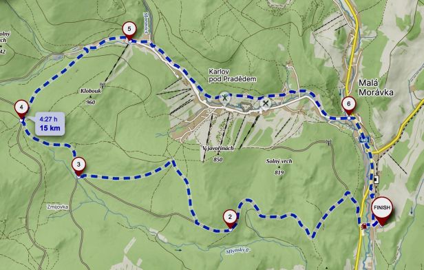 At the bottom, however, when we emerged from the forest to follow the road back into town, we came into the full, noon-time sunshine and it was very hot indeed. Mála Morávka has a skiing area and that was centred around the road we were then on. There was a lot of activity on what are the wintertime ski slopes to prepare them for more Summer oriented activities such as hiking and mountain biking.