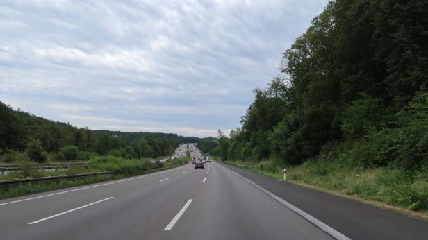 There was a lot of traffic. Whether this was the start of the holiday season or just “Germany are out of the EUROS, so let us go for a drive in our car”, I cannot say. Because of the sheer volume of cars, there was a lot of congestion and, frequently, kilometre after kilometre of slow-moving traffic. Notice that I said “slow-moving”. Germans can drive very fast, but they also understand how to drive slowly. They do it sensibly and in an orderly way. In sixty kilometres of crawling traffic, I only put my foot down twice. The second of those times was when we could actually see our turn-off and when a Police car brought the whole motorway to a complete halt, just so that some Dutch driver could retrieve his fallen-off number plate from the carriageway …..