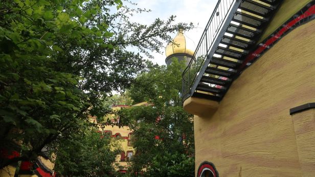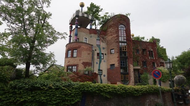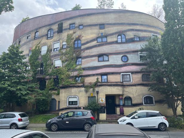 This is an entire city block, constructed in the maestro’s unmissable style. The domes, the trees, the multi-coloured columns are all there and it towers above the neighbourhood. There must be hundreds of flats. It REALLY is something to see !