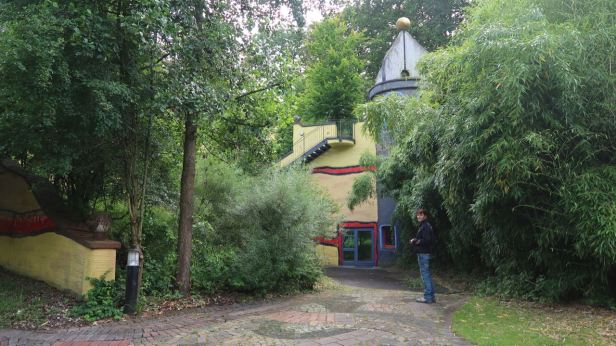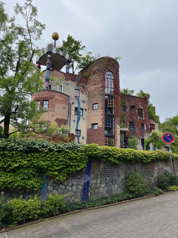 You will not be surprised to learn that I slept like a log, indeed it was after 06:30 when I stirred and the sun was already shining outside of our window. I made Lucie a coffee, thanks to the in-room facilities and she more or less immediately began packing. We had ascertained that Mr Hundertwasser’s creation, the “Ronald McDonald haus”, was able to be approached through the same Gruga Park, the fence of which we had disconsolately stared over the previous evening. Access was via the main gate and the park opened at 09:00. As breakfast in our hotel did not begin until 08:00, we needed to be on our toes to leave as soon as we had eaten it.
