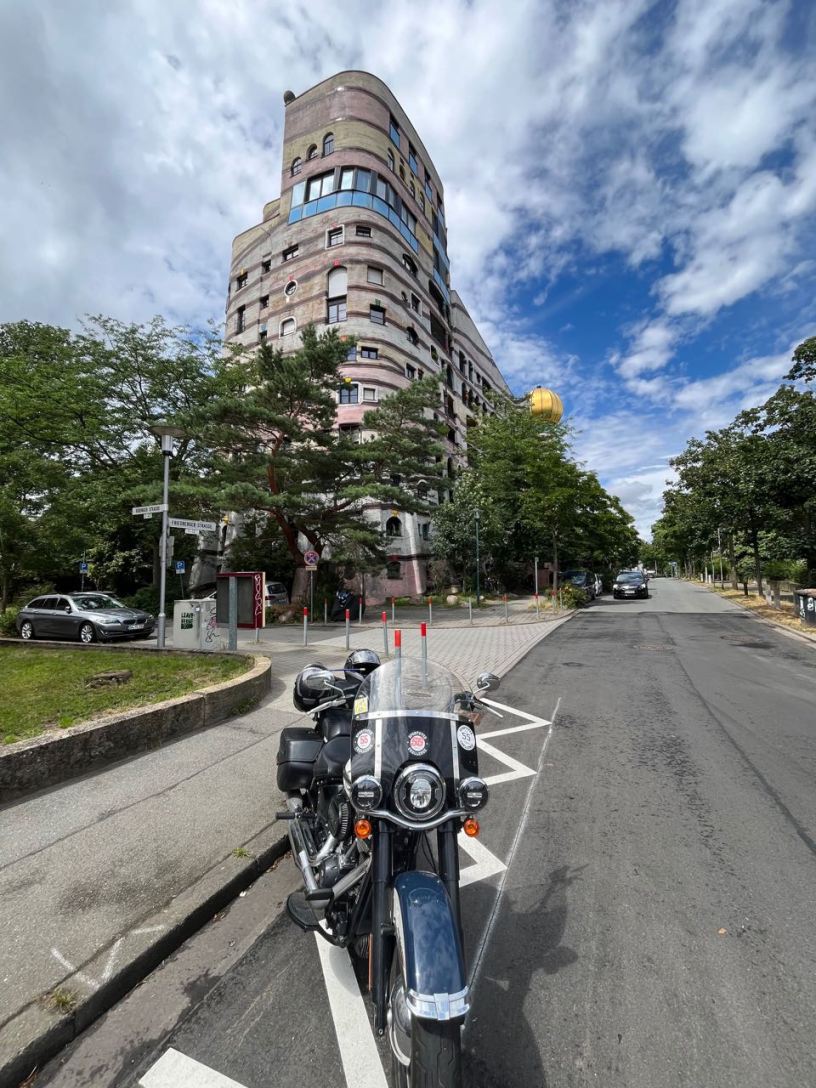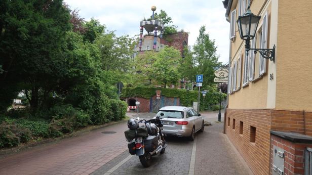 We quickly thanked the kind lady on the till and saddled up to head for our next Hundertwasser location, which was in a town near Frankfurt and over 200 kilometres away.