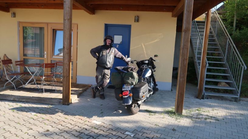 We broke up the journey by stopping twice, once for petrol at the D5 exit 128. I mention that, specifically, because the petrol there is around five Czech Crowns a litre cheaper than on the motorway itself. Even with the relatively small tank on the Harley, this is quite a difference if, like ours was, your tank is a bit low.