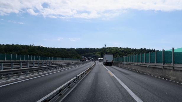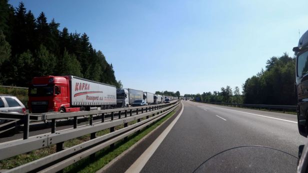 I will say it again, a motorway is a motorway. It was surprisingly quiet until we left the A93 and joined the A6. Once we got on the A6, it was basically a straight ride home of around 180 kilometres. This motorway is also known, for some reason as the “Via Carolina” and when it arrives at the Czech border, that designation stays, but it becomes the Czech D5. Just inside the German border, huge lines of trucks were waiting to be “inspected” !