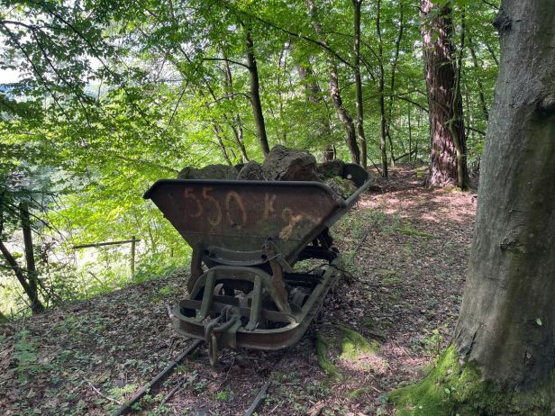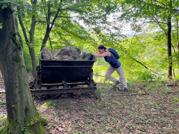 At one point, we found an old mining cart (which, try as she might, Lucie was unable to move …)