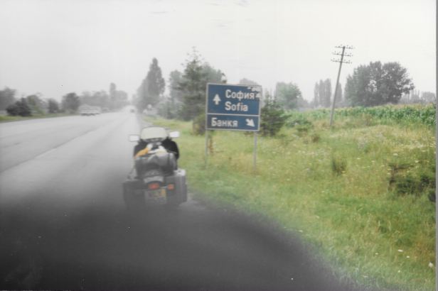 Having finally made it through the border, I heaved a sigh of relief and pointed my bike in the direction of the Bulgarian capital, Sofia. I really felt things were going well as I passed my first sign that was lettered in both Roman and Cyrillic script. However, hardly had I got my bike into top gear than I came to a road block.