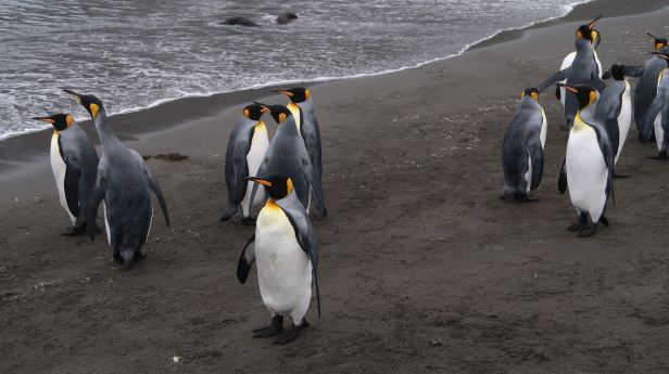 We had been cautioned not to get too close to the wildlife. Sadly, or perhaps luckily, depending upon your point of view, the wildlife had not been cautioned not to get too close to us. Most penguins simply ignored us and just went about their penguin lives as if we were not there. Some, though, were as interested in us as we were in them. Not all the creatures, in this shot, for example, are King penguins.