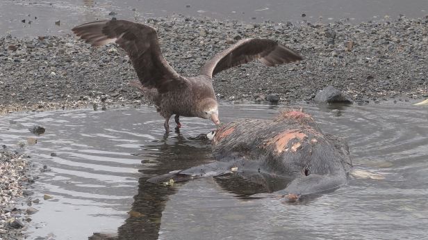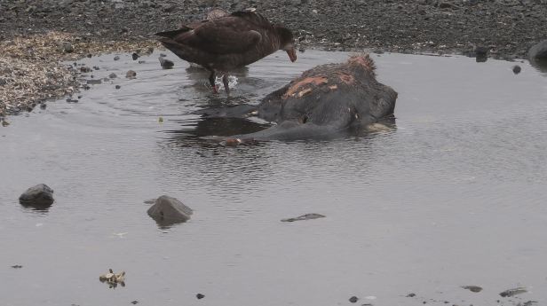 There was the odd dead seal or penguin, laying here and there. Whether they had died from natural causes or from avian flu, we could not tell. The carcasses were providing lunch for the large Giant petrels and groups of skuas that patrolled continuously backwards and forwards.