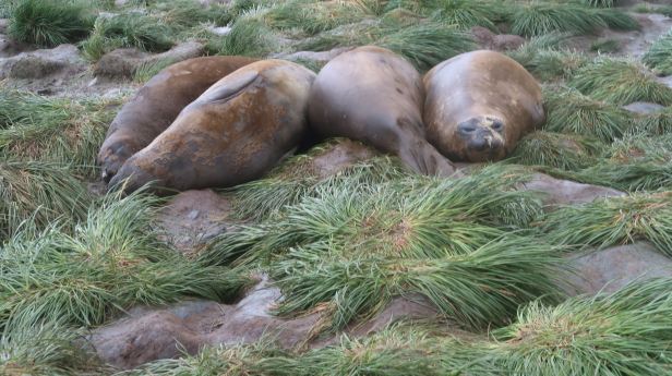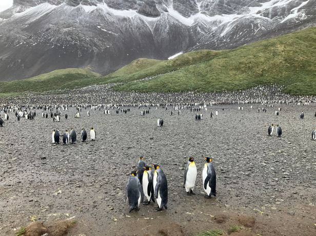 The seals were interspersed with groups of King penguins often dozens strong.