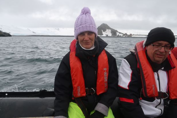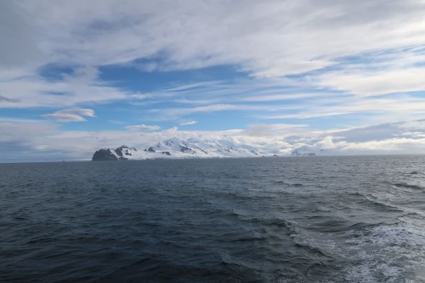 Back on board, we checked on Wendy. She had three stitches and a big padded bandage. She was a bit embarrassed, but she is from Newcastle upon Tyne and was made of tough stuff. She assured us that she would be at dinner – as that was going to be Wanda’s birthday party. The Plancius had, meanwhile, raised its anchor for the final time. It set off north towards the dreaded Drake’s Passage. Lucie and I leaned on the rail and took a few pictures as the Antarctic faded from sight. It will never fade from our memories.