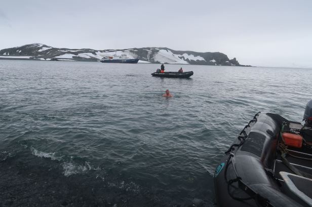 As I said earlier, Half-Moon Island had also been chosen, by Ali, as the location for the expedition’s “Polar Plunge” ….