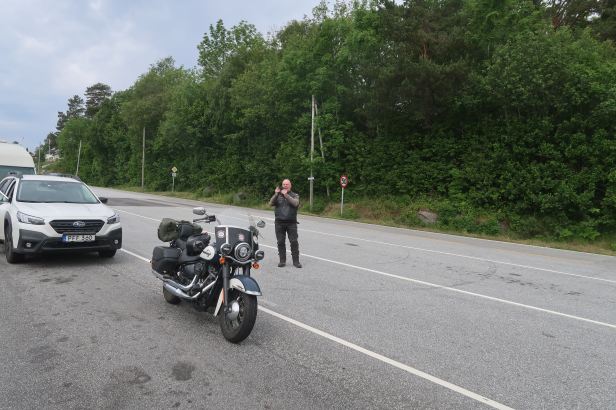 When we went to check-out, it transpired that quite a number of our fellow guests were also bikers. The country of Norway is a bit of a biker’s paradise and there were a lot of them in the lobby and others outside loading up their bikes. They were almost exclusively of the enduro/dual sport type and when I walked round and fetched the Harley from the car park, it attracted a lot of comment.