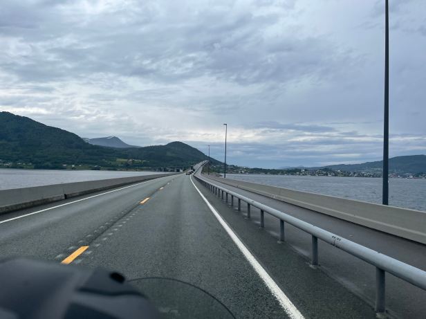 Sunday morning dawned brightly and cheerfully in Kristiansund. I awoke much refreshed and very much looking forward to the day ahead. It would not be long before we finally set eyes on the bridges that were, ostensibly, the reason why we had travelled so far. They were less than forty kilometres from where we were and now very much within our grasp. Plus, before we even set off we would experience the “Scandic breakfast”. Lucie likes Scandic’s coffee policy – I like their breakfasts – that was why we were in this hotel and not some other.