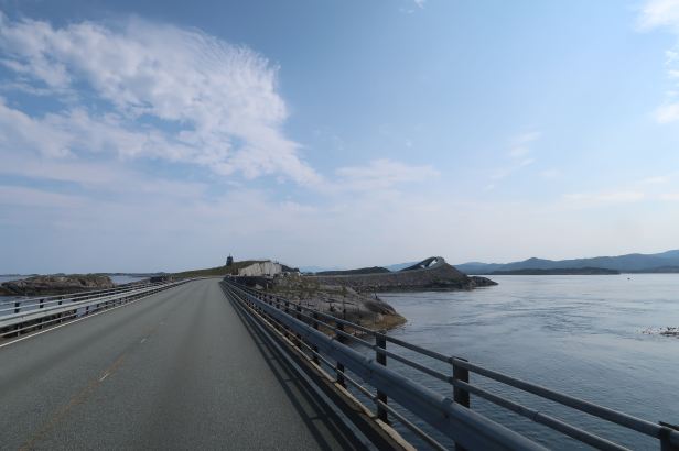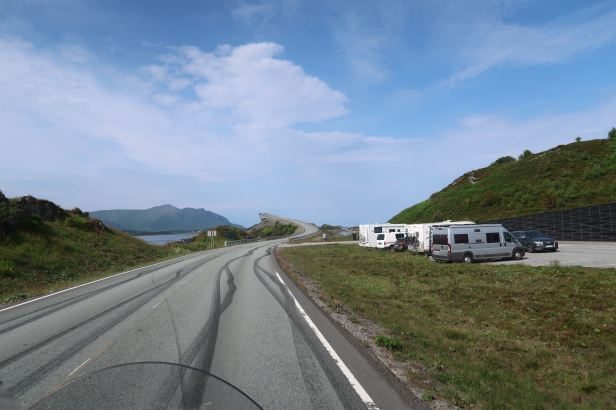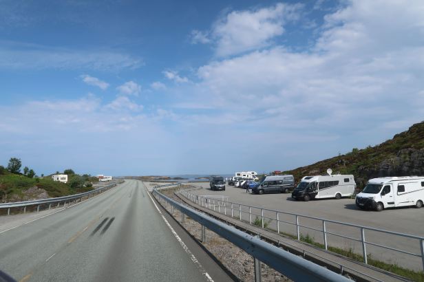 The bridges start slow, essentially as just, err, bridges and, contrary to my expectations, that is all most of them actually were. They are a bit swoopy and they are elegantly curved in places but only the central one (the Storseisundbrua) which has a fairly dramatic up and down and is the one which features in the James Bond film, is really something special. Nonetheless, the bridges attract thousands of visitors (all the parking areas were packed solid) all of them drawn, as I had been, by their perceived “fame”.