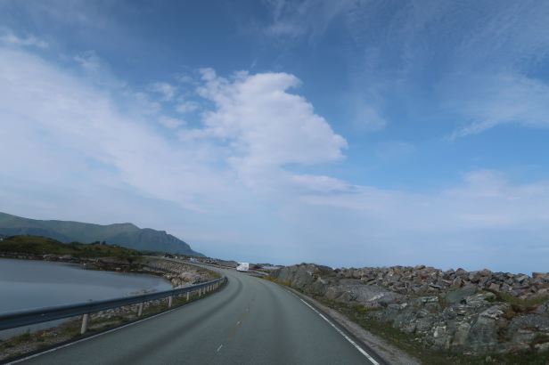 Then we descended into another very impressive and very long tunnel that went right underneath the same harbour. Once again it was cold enough in the depths for me to receive audible notification of that fact through the intercom and again we emerged into bright sunshine. I guess it was about there that we joined route 64, the Atlantic Ocean Road.