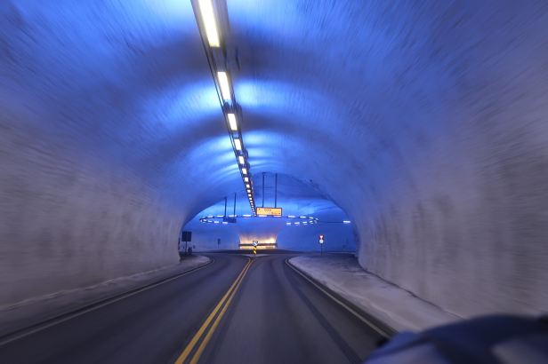 The effort that Norway puts into its tunnels is simply mind blowing. They are, I suppose, a practical necessity for the people in the widely scattered Komunes. The people in Ovre Ardal, for instance, would probably never go anywhere if it meant crossing the two barren moors at the top of those serpentines – and it would take hours, even in Summer. In Winter, it would simply be a case of stay at home and pickle some herring or something similar. A huge amount of work has gone into joining these remote communities together – and it is still ongoing.