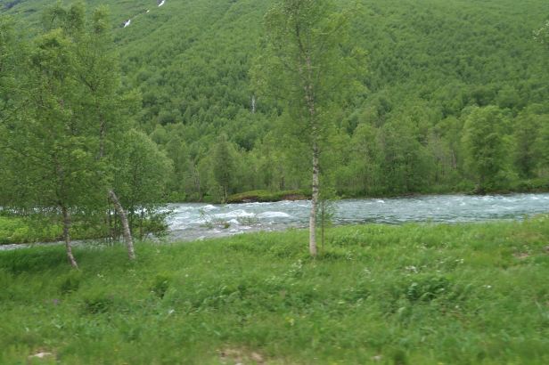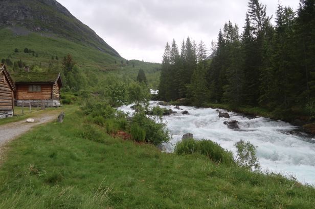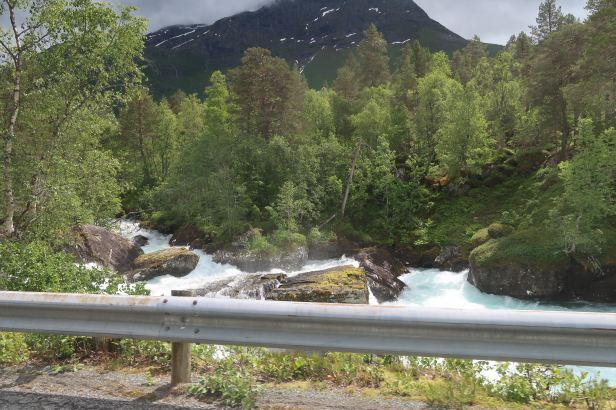 We drove uphill, on route 63. For most of the initial part of what was an almost continuous ascent, this paralleled the wild river Valldola that entered the fjord next to our hotel. The sheer power of the water was obvious from its churning channels and the white foamy crested waves of its surface.