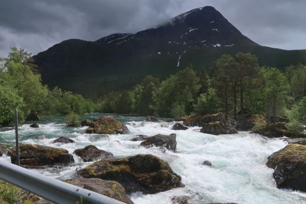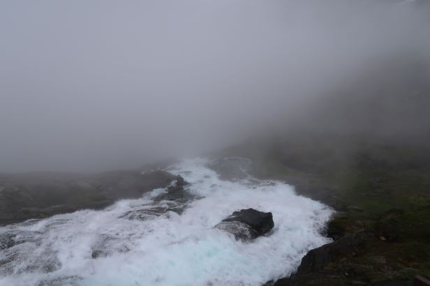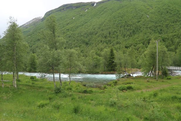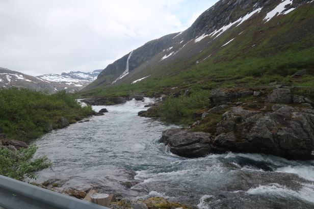 We drove uphill, on route 63. For most of the initial part of what was an almost continuous ascent, this paralleled the wild river Valldola that entered the fjord next to our hotel. The sheer power of the water was obvious from its churning channels and the white foamy crested waves of its surface.